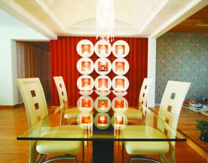 家居設(shè)計中重復(fù)的構(gòu)成元素有很多,主要是指形狀、顏色、大小等方面。比如中式設(shè)計中的窗格,可以用在隔斷、墻面、屏風(fēng)、展示架等各個方面,通過這種重復(fù)使用的方式加深中式家居風(fēng)格給人的印象,同時,也讓家居中的每一個空間都有統(tǒng)一的主題。