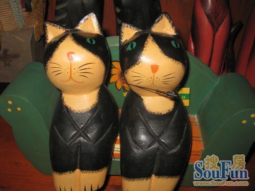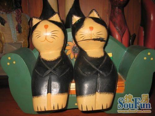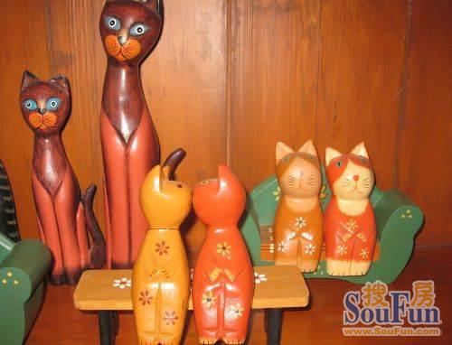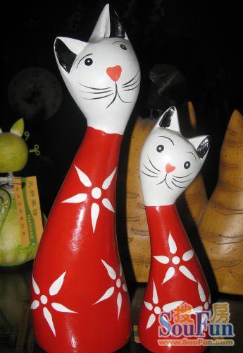 木質(zhì)雕刻的貓貓造型一對。古樸典雅,小碎花點綴在紅色的底色上,放在房屋的任何一角都是屋子的亮點。相信不少朋友選用的是紅色的沙發(fā),沙發(fā)旁的小茶幾上擺放一對木刻貓,整體搭配特點更佳突出。