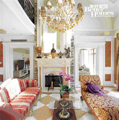 圖3:羅馬柱門的石膏線條秀氣挺拔,白色線條的精細(xì)纖巧將客廳的奢華觀感自然過(guò)渡到另一間舒雅閑適的休閑客廳。裝飾的承前啟后使風(fēng)格的轉(zhuǎn)變不顯突兀。