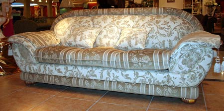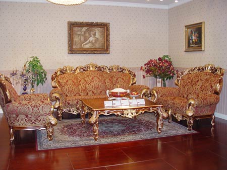 這是三人入座的布衣制的沙發(fā),它雖然沒有第一款顯得那么正式,但是高貴和華麗卻一點也沒有消失。