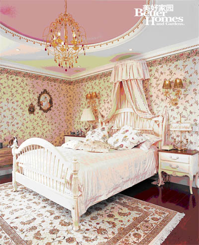 女孩房的衛(wèi)浴間:淺紫色的屋頂相比白色更有柔美感,褶皺的紗簾也別具小女生情調(diào)。獨立浴缸看起來有漂浮感,頗具裝飾性,讓其成為注意力的焦點,可掩飾衛(wèi)浴間過大帶來的視覺空曠感。