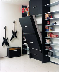 解決之道:房子小有小的巧妙,這個(gè)時(shí)候完全可以將日常的書房改造成臨時(shí)客房。難點(diǎn)只在于如何在不來(lái)客的時(shí)候不讓床鋪占用位置,并且休憩起來(lái)舒適。這一家的主人就把工作間、書房和客房完整地融合在了一起。主人思考頗為縝密,在裝修之初就考慮好了每個(gè)房間的功能和用途,使得設(shè)計(jì)師能夠?qū)⒋蔡煲聼o(wú)縫地安裝在書柜里。這樣既不會(huì)為不大的居室增添一間閑置房間,又擁有一個(gè)獨(dú)立的書房。