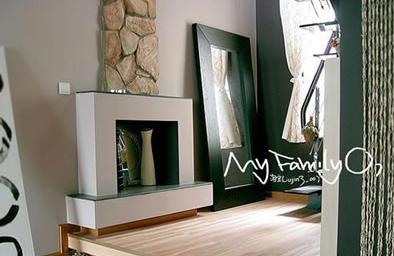 自己設(shè)計的壁爐,旁邊的落地鏡是宜家買的800元,有點心痛、