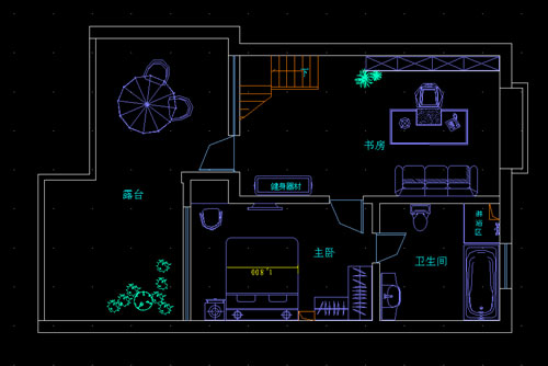書房是一個安靜的環(huán)境,相對于一層的設(shè)計,在保持前衛(wèi)搭配的基礎(chǔ)之上少了些許硬朗的感覺。軟質(zhì)沙發(fā)的設(shè)計依然酷勁十足,但是沒有了一層皮質(zhì)沙發(fā)那種棱角分明的感覺。