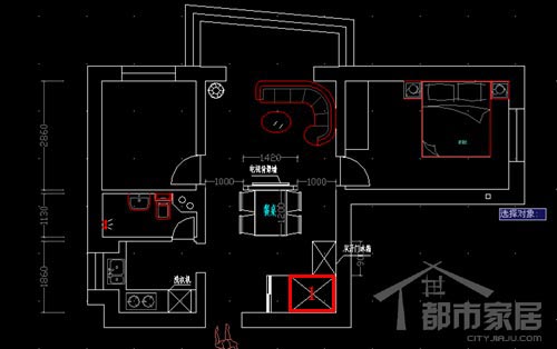 設(shè)計師首先向都市家居記者強(qiáng)調(diào)了一點:標(biāo)紅1的方塊區(qū)域是一根“柱子”,在量房的過程中設(shè)計師就發(fā)現(xiàn)了它,但是業(yè)主表示也不知道里面是什么,房型圖上也沒有關(guān)于“柱子”的標(biāo)注。設(shè)計師和業(yè)主決定砸開墻面看看,如果里面沒東西,就把這塊空間推進(jìn)去,還能增加一些房屋的面積。這一砸不要緊,砸出了06年春晚小品《如此裝修》中的情景:墻的那邊是鄰居,最后只能把墻面又補了回去。