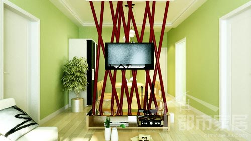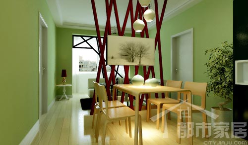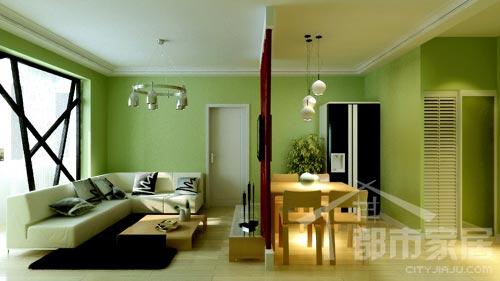有了鳥巢的感覺,大家可能會想如果房間是水立方的藍(lán)色,那就更有奧運味道了。但是要告訴大家,首先業(yè)主在選擇墻漆顏色時并不太喜歡藍(lán)色,而選擇了綠色;其次,從色系角度上講,藍(lán)色比綠色更冷,長期生活在藍(lán)色環(huán)境中讓人感覺到陰冷,壓抑。加之奧運會的宣傳口號中有“綠色奧運”的提法,所以業(yè)主很果斷地選擇了綠色作為家裝的主體色調(diào)。