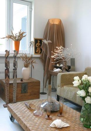 說(shuō)它是一個(gè)小千世界,是因?yàn)樵谒⌒〉摹吧碥|”里,卻有著“萬(wàn)千氣象”。我們喜歡淘東西,不是為了收藏,就是因?yàn)橄矚g。天南地北的東西我們淘了不少:天津的泥人、陜西的布老虎、山東的泥老虎、貴州的泥馬叫、無(wú)錫的大阿福、紹興的手工蠟染、**的矮柜、徽州的樟木箱、還有印尼的各種木貓、菲律賓的藤編小方幾、印度的佛像、非洲的木雕、尼泊爾的銀器、日本的陶瓷,他們走進(jìn)我們的小小“蝸居”,為我們的家增色增味,更重要的是還為我們?cè)鎏砹嗽S多的快樂(lè)。朋友戲言,你家簡(jiǎn)直像個(gè)博物館,該開(kāi)個(gè)小店了。