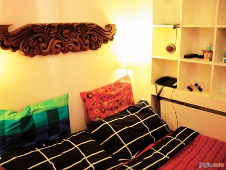 臥室顏色比較鮮艷,床頭上的裝飾與眾不同。