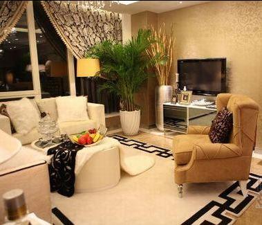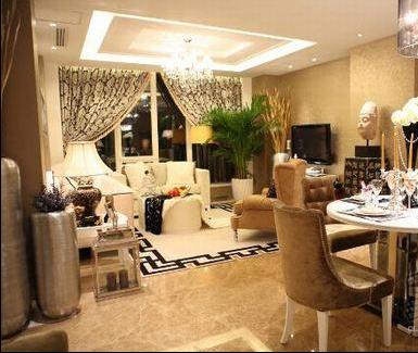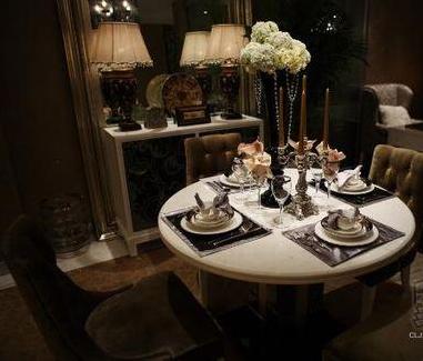 概要: 這套房子在整體裝修設計上并沒有花費太多的功夫,天花板和地面均以淺咖啡色為主調,墻面也只是貼上一層淺咖啡色的花紋墻紙,空間的視覺效果重點突出在擺設上,以歐式為主基調,典雅、奢華、時尚水晶吊燈、玻璃餐具,清透的質地減少了空間的厚重,增添幾分華麗感。頗具東方元素的地毯將客廳與餐廳清晰地劃分開,巧妙地實現了分而不斷,絲毫無損房間的整體、連貫,讓房間顯得大氣、寬敞。