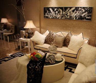 中國風的地毯將會客廳顯眼而莊重地突出,圓桌上看似隨意鋪擺的羊毛毯子令會客廳的氛圍變得較為輕松舒適,降低了整體奢華帶來了壓抑緊迫感??蛷d里最為搶眼的當數電視機旁邊的雕像了,不管是栩栩如生的漢朝人頭雕像還是座臺上的歷史悠久的中國文字,都讓房間彌漫著濃濃的中國文化氣息。