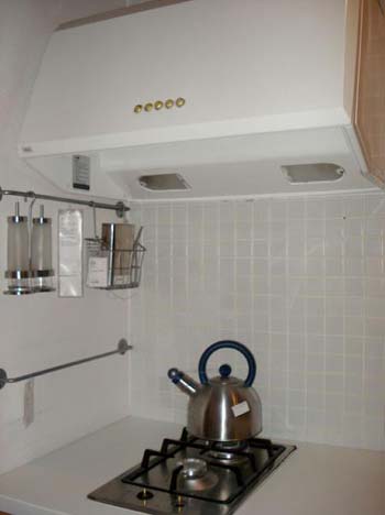 因?yàn)閺N房較小,太多的壁柜會(huì)顯得相當(dāng)擁擠,這套廚房設(shè)計(jì)就只是在墻角的地方設(shè)置一個(gè)壁柜,可以放置些廚房雜物等。