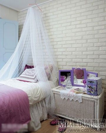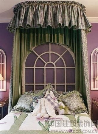 就一般床的構(gòu)造而言,床頭的高度欠缺氣 勢(shì)。因此,對(duì)床頭的那面墻有必要進(jìn)行特別的裝飾,如用地板類" title="" target="_blank">板材或裝飾布等,裝飾出幾平方米的面 積;此外,用紡織面料制作的床頭的床幔,好似人的頭飾,大有可為,如用窗簾布垂掛、對(duì) 開等造型,猶如給床戴上了花頭巾。