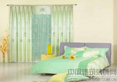 臥室中既然以床為中心了,其它飾物一般就應(yīng)有“退居二線”的襯托意識(shí)。如窗簾,面積較大,太艷、太豪華了,就會(huì)與床飾形成兩個(gè)“中心”,以至讓人眼花繚亂。故窗簾應(yīng)選用相應(yīng)一點(diǎn)兒的色彩、圖案、面料,像一個(gè)“仆人”站在床邊