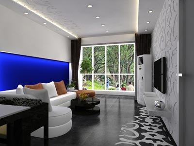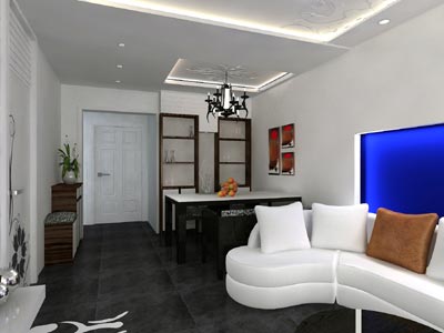 相信大家都會覺得,乍一看客廳沙發(fā)背景墻的用色還真夠大膽,設(shè)計師對此有什么說法呢?他解釋道:“我自己也想過用這樣夸張的顏色,業(yè)主可能不好接受,但我最終還是決定了這樣來做。因為客廳的空間比較狹窄,從沙發(fā)到電視墻之間也就三、四米,因此沙發(fā)背景墻不可再做立體造型或者復(fù)雜的圖案了,于是我就做了這么一個相當(dāng)簡單的墻面造型,為了不使它太過單調(diào),我只有在顏色上凸顯它的裝飾效果。同時藍(lán)色和白色之間起的對比也使空間更有層次?!?/FONT>