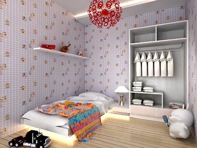 這是兒童房的效果圖,令人奇怪的是衣柜上居然沒有柜門。設(shè)計師說這也是他自己最新的一個嘗試:“因為房間很小,所以我想不做柜門試試看,會不會令空間更加通透?!薄翱墒沁@個衣柜實在是奇怪,誰家會習(xí)慣用它呢?”小編也疑惑了。設(shè)計師笑著說:“這其實是我自己的新思路,大家能不能接受就有待驗證了。我認(rèn)為只要家里干凈,衣柜即使沒有門也不會積灰。并且把五顏六色的衣服掛得、疊的整整齊齊,也能算是家里的一道獨特風(fēng)景吧。”