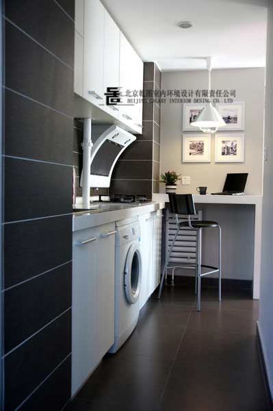 別許靜:“小戶型設計切忌隔斷太多,打掉一些非承重墻可以使原本有限的空間看起來更加開闊,所以我在這里做了開放式廚房。另外,因為主人沒有在家做飯的習慣,并不需要一個正式的餐廳,只要有一個用餐的地方就可以了,所以我給他設計了這樣一個不太占空間而又非常實用的吧臺?!?/FONT>