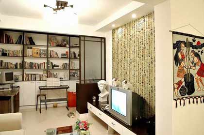 第九,可在客廳角落以簡(jiǎn)單的桌椅營(yíng)建一個(gè)工作空間,再以屏風(fēng)來(lái)遮擋桌椅。