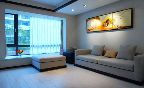 "只要實用"成為現(xiàn)代風格的口號,一經(jīng)提出,廣為傳誦?,F(xiàn)代風格強調的是功能至上的原則,以最少的材料達到實現(xiàn)功能的要求。與現(xiàn)代人緊張忙碌的生活相適應,現(xiàn)代風格的客廳只強調必要的沙發(fā)、茶幾和組合電器裝置,不再有觀賞性強的壁爐和繁瑣的布藝窗簾等過分裝飾。圖一中墻面與天花處理成白色,避免小客廳的視覺壓抑,地面采用純天然木質地板,美觀實用。將客廳延展至陽臺,擴大小客廳的面積,于窗下設置的臺板增強實用與休閑感,簡潔的羅馬窗簾與沙發(fā)、地毯相呼應,充滿了現(xiàn)代感。造型獨特的玻璃茶幾是小客廳的上佳之選,既活躍了居室氣氛,又避免打亂小客廳中原有的色彩平衡。