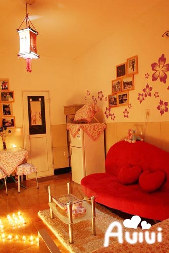 客廳,對(duì)這個(gè)紅色心型沙發(fā)一見(jiàn)鐘情,可舒展開(kāi)當(dāng)床。辛唐米娜說(shuō):婚床一定得新娘自己買,吵架的時(shí)候,可以理直氣壯地對(duì)新郎說(shuō):滾,從我的婚床上滾下去。既然買不了床,就買個(gè)沙發(fā),吵架的時(shí)候可以分居睡。吼吼。