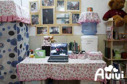 書(shū)房,每天上網(wǎng)的地方。左邊是衣柜,右邊是木架。細(xì)心的朋友可以看到餐巾盒、手機(jī)架,都是在淘寶上學(xué)來(lái)的,我可是個(gè)手工狂。