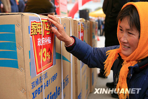 概要: 農(nóng)民在家電下鄉(xiāng)中購買彩電、冰箱等產(chǎn)品,將得到銷售價格13%的財政直補。2月1日,江蘇省“家電下鄉(xiāng)”工作正式啟動。江蘇省興化市戴南鎮(zhèn)的王巧云來到鎮(zhèn)上的“家電下鄉(xiāng)”直營店選購洗衣機。