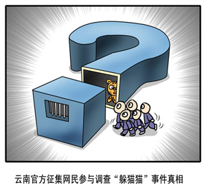 隨著“躲貓貓”一詞在網(wǎng)絡上日漸流行,網(wǎng)友相互間問候、戲謔也有了新說法:“今天你躲貓貓了嗎?”“你再這樣,小心我讓你躲貓貓!”針對“躲貓貓”致人死亡的事件,網(wǎng)友及社會人士代表組成的調(diào)查委員會20日開始調(diào)查,記者也成為委員會成員之一。調(diào)查委員會最終未能接觸到核心人證物證,因此雖然7000余字的調(diào)查報告已經(jīng)公布,但廣大網(wǎng)民心中仍有不少疑問。