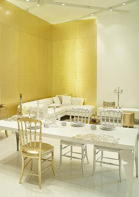 其中,金銀的光澤由于牽連著實物的價值,比較容易獲得解釋。值得注意的是人們檢驗金銀的標準,即“成色”,所考究的是它們的純度,猶如人們檢驗一個人的品質(zhì)或者出身,或者諸如此類的問題一樣。尤其自近年以來,純用金色或銀色,而不是將它們拿來做鑲邊的做法日趨流行,當然可以說這是金融危機之下人們尋求補償心理的某一側(cè)面反映,卻也可以說是在一個變幻而浮華的世界里,人們重新回到了古老的永恒品質(zhì)的路途上。不管怎么說,還有什么能比真金白銀更無需修飾、無需任何其他的附加物,自己便能證實自身的價值呢?