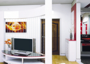 這間房屋的主人是一對即將結(jié)婚的年輕夫婦,在對房屋設(shè)計的要求上希望能夠脫離以往新房裝修時大紅大紫的常見做法,因此我采用了冷色調(diào)處理,讓他們能夠擁有自己獨特的風(fēng)格。經(jīng)過我進(jìn)行實際度尺后,首先感覺到房屋的客廳不大,門多。于是我重新建了一個實用的多功能廳,盡量在不大的空間內(nèi)實現(xiàn)更多的功能,而且輕快時尚的居家氛圍也更適合時下的年輕人,并在滿足過道通暢的基礎(chǔ)上重新定位了電視背景隔斷,廚房特意做成了開放式的。在這套設(shè)計當(dāng)中,保證過道的流暢是設(shè)計的關(guān)鍵,所以我盡量地拓展視線,通過半開放的隔斷和弧線造型來滿足通暢的要求。