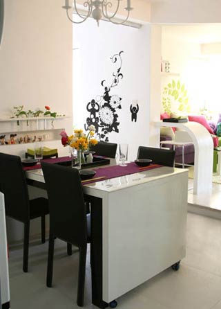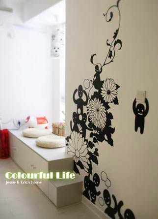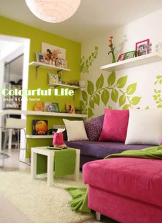這一款樣板間最大的特色在于顏色,艷而不俗,媚而不妖。色調(diào)的選擇和巧妙的搭配,避免了大面積色塊帶來的視覺過度刺激,只給人一種青春活力之感。手繪在這所居室中大膽體現(xiàn),臥室,客廳各個各的手繪特色,置身于這樣的環(huán)境中,讓人想心情不好都難。