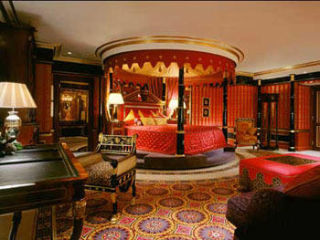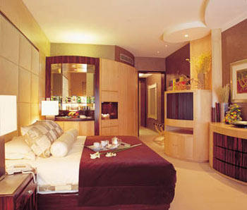 總統(tǒng)套房面積共有435平方米,異域風味濃厚的內部設計采用了傳統(tǒng)的胡桃木、皮草、天然纖維制品和意大利大理石等材料,與現(xiàn)代原創(chuàng)藝術作品及等離子電視等時尚元素完美結合,并且配有家庭影院設備、高級音響,傳真機、筆記本電腦和兩套帶有小電視的極可意水流按摩浴缸。入住太陽總統(tǒng)套房即可享受豪華閣待遇,例如在豪華閣酒廊辦理快捷入住和退房手續(xù)、每日免費早餐、免費上網、使用會客廳、享用專屬健身俱樂部和室內游泳池等等。
