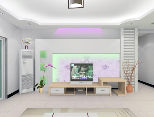 電視背景墻的燈光布置,多以主要飾面的局部照明來(lái)處理,還應(yīng)與該區(qū)域的頂面燈光協(xié)調(diào)考慮,燈殼尤其是燈泡都應(yīng)盡量隱蔽為妥。背景墻的燈光不像餐廳經(jīng)常需要明亮的光照,照度要求不高,且光線(xiàn)應(yīng)避免直射電視、音箱和人的臉部。收看電視時(shí),應(yīng)有柔和的反射光作為基本的照明就可以了。