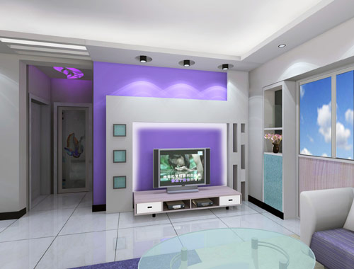 以亮麗的色彩和各種飾線(xiàn)來(lái)充實(shí)點(diǎn)綴,客廳內(nèi)家具擺放要簡(jiǎn)潔卻不失單調(diào),電視墻墻體的主色調(diào)可用橙色、天藍(lán)色、紫色等“跳”一些的亮麗色彩,用色可大膽、巧妙,也可用兩種對(duì)比強(qiáng)烈的色彩搭配。對(duì)于追求個(gè)性的年輕人來(lái)說(shuō),將電視墻面涂成自己認(rèn)為夠酷夠爽的色彩是不錯(cuò)的選擇。墻上采用幾何造型的飾線(xiàn)和精美材料組合運(yùn)用,體現(xiàn)現(xiàn)代化的裝飾風(fēng)格。