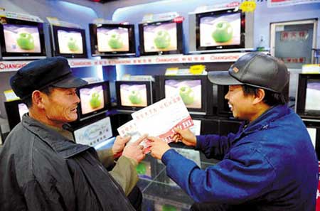 一是各地對家電下鄉(xiāng)的宣傳工作有待加強?,F在還有很多農民不知道有這回事,或者對程序不明白。