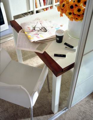 書房和辦公室不同,因為書房有輔助區(qū)來完成大量的儲藏功能,所以家庭辦公的書桌可以盡量甩開辦公室的影子,不必遵行所謂的標準尺寸,而強調(diào)工作臺面的舒適。有的人喜歡寬大的臺面,則要看房間的面積能否容納;有的人喜歡裝飾性強的書桌,則要看風格能否融入環(huán)境;有的人喜歡多功能書桌,則要考慮書桌周邊的功能配合。而購買書桌時,我們也要考慮椅子的尺寸和風格,因為,椅子對于書桌,就像茶幾對于沙發(fā),都可以自行搭配。
