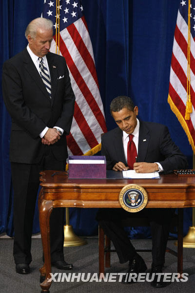 2月17日,在美國西部城市丹佛,美國總統(tǒng)奧巴馬簽署總額為7870億美元的經(jīng)濟刺激計劃。新華社/路透