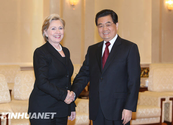 2月21日,國家主席胡**在北京人民大會堂會見美國國務(wù)卿希拉里·克林頓。 新華社記者姚大偉攝