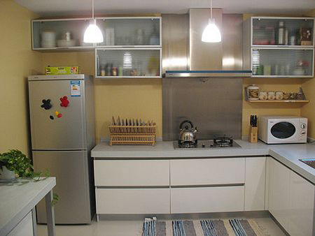 圖一中的廚房就是通過(guò)局部重色的點(diǎn)綴,然后配比大面積的淺色系地磚,讓居室空間看上去高挑但又不失重點(diǎn),葉國(guó)密說(shuō),開(kāi)放式廚房的頂面采用磨光的黑色石材,表面光滑如鏡,能夠反射居室光線,與高亮度地磚形成強(qiáng)烈對(duì)比,這種方式不僅可以在開(kāi)放式廚房中使用,對(duì)于小戶(hù)型的吊頂也不失為一種劍走偏鋒的方式。