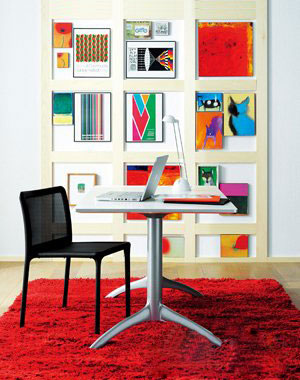 畫面的選擇重點當(dāng)然是色彩,那些明艷的、純度高的顏色都可以嘗試,條紋、色塊、規(guī)則幾何都可以充分展示色彩而不至于發(fā)生構(gòu)圖上的不協(xié)調(diào)。如果你興致來了,也可以自己創(chuàng)作一幅涂鴉,擺出來,絕對是獨(dú)一無二的裝飾作品。
