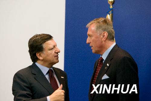 3月1日,在比利時(shí)首都布魯塞爾,歐盟委員會(huì)主席巴羅佐(左)與歐盟輪值主席國捷克總理托波拉內(nèi)克在歐盟首腦會(huì)議上交談。歐洲聯(lián)盟特別首腦會(huì)議當(dāng)天在布魯塞爾召開。會(huì)議將重點(diǎn)討論如何拯救遭受金融危機(jī)重創(chuàng)的歐盟經(jīng)濟(jì),并為定于4月2日在英國首都倫敦舉行的二十國集團(tuán)金融峰會(huì)協(xié)調(diào)內(nèi)部立場(chǎng)。 新華社記者 武巍 攝