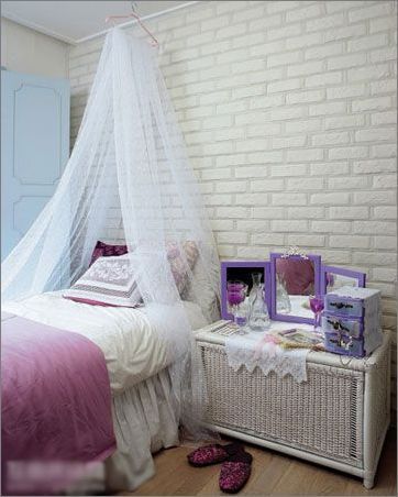 與床頭相對的那里墻,最好不要放過多、過高的家具,避免“堵 ”的不良視覺效應(yīng)。如果床對面的家具上有通體的大鏡子或墻上裝一面大鏡子,即可擴(kuò)張空間, 又映出床頭的景色,悅目心舒。此外,床對面貼張大的風(fēng)景畫,也很開眼界;在床尾的地面上鋪 一小塊工藝地毯,效果挺不錯(cuò)。