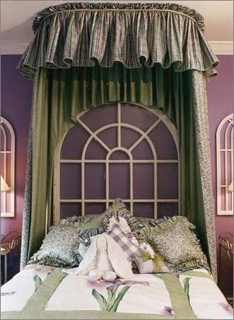 一般講,床頭那面墻沒有窗子的。人為地裝飾出假窗,在安全、 不受風(fēng)又享受通暢感,比如,造一個(gè)“中式”的圓形窗或“月亮門”,是別有風(fēng)味的。