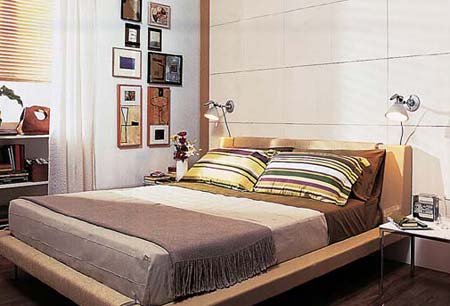 臥室墻面上裝飾畫的安排與客廳里的收納、展示并存的方式相同,并為雪白的墻壁增加了許多審美價(jià)值。窗下的矮柜可以根據(jù)需要存放文件、書籍或臥室必備的常用物品,營(yíng)造富有人情味的生活氛圍。