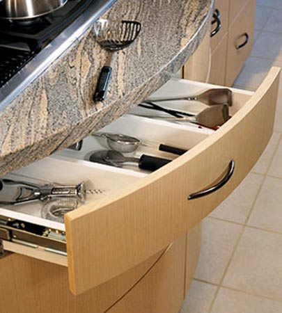 把抽屜分成幾個格子,用來分別存放小件的廚房用具。拉開抽屜,一眼就能找到自己想要的東西。