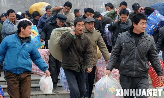 2月27日,“援川公路項(xiàng)目農(nóng)民工現(xiàn)場(chǎng)招聘會(huì)”在鄭州綠城廣場(chǎng)舉行,首批70多名被錄用的返鄉(xiāng)河南農(nóng)民工前往四川省江油,參加為期一年的援建公路項(xiàng)目。一組沉重的數(shù)字牽動(dòng)著全國(guó)人大代表和全國(guó)政協(xié)委員的心:受?chē)?guó)際金融危機(jī)影響,全國(guó)1.3億外出務(wù)工農(nóng)民工中,有2000萬(wàn)失崗返鄉(xiāng)。來(lái)京參加全國(guó)兩會(huì)的代表委員帶來(lái)了大量關(guān)于完善農(nóng)民工社會(huì)保障的議案、建議和提案。重慶綦江縣委書(shū)記王越代表說(shuō):“對(duì)于農(nóng)民工而言,更加發(fā)現(xiàn)如此熟悉的城市并不屬于自己:不能享受城市最低生活保障、醫(yī)療保險(xiǎn)和公共福利,不能申請(qǐng)經(jīng)濟(jì)適用房和廉租房……”新華社發(fā)