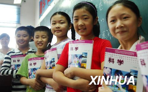 資料圖片:2008年8月30日,合肥市長(zhǎng)江路二小六年級(jí)(2)班的學(xué)生領(lǐng)到新課本。根據(jù)國(guó)務(wù)院決定,從2008年秋季學(xué)期開(kāi)始,在全國(guó)范圍內(nèi)全部免除城市義務(wù)教育階段學(xué)生學(xué)雜費(fèi)。這是繼農(nóng)村義務(wù)教育經(jīng)費(fèi)保障機(jī)制改革后,又一項(xiàng)重要民生工程,將惠及全國(guó)城市中小學(xué)生2821萬(wàn)人。新華社記者李健攝