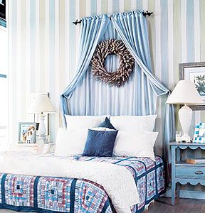 地中海的天空、海洋、沙灘,那種連空氣中都漂浮著悠閑味道的藍色與白色無處不在,好像薄紗一般輕柔,讓人感到自由自在,心胸開闊,使用這類色彩裝飾的居室空間,似乎也變得像窗外的天空一樣寧靜、悠遠。引用屬于地中海碧海藍天的自在浪漫的臥室,讓心靈在醉人的藍色里徜徉。