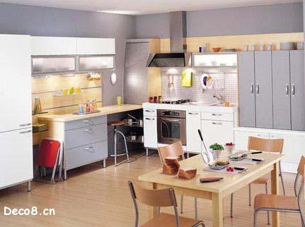在裝修、布置小廚房的時(shí)候不僅需要各個(gè)面有色彩,而且還要有亮度,因?yàn)樾N房的使用面積非常有限,所以在整體色彩安排方面,應(yīng)切忌花花綠綠。特別要注意不能使用印有立體感圖案或明暗對(duì)比強(qiáng)烈的裝飾材料,否則不僅會(huì)使廚房面積在視覺(jué)上顯得狹小,而且容易使人產(chǎn)生凹凸不平的錯(cuò)覺(jué)。墻面色彩安排宜以白色或淺色為主,而不宜使用反差過(guò)大的顏色。