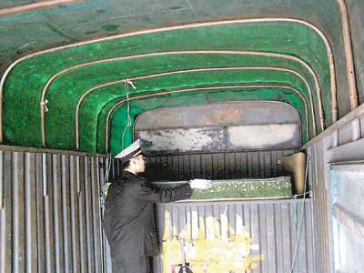 執(zhí)法人員進一步檢查,驚奇地發(fā)現(xiàn)該貨車車廂改裝成了一個小鐵屋,車廂內(nèi)設有3張席夢思改裝成的6個臥鋪座位。