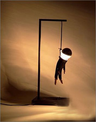 把臺燈做成一個上吊的小人。喜歡恐怖片的人,不妨試試