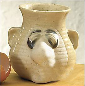 它由陶瓷制成,不過外形上看上去很特別,被做成了一個大鼻子先生的樣子。這也正是其創(chuàng)意的獨到之處,你只要將蛋殼敲碎,將雞蛋放進這個容器里面,然后慢慢傾斜,它就能夠讓蛋清流出,留住蛋黃。不過,當?shù)扒鍙乃拇蟊亲永锩媪鞒鰜頃r,就像是一股股的鼻涕一樣……